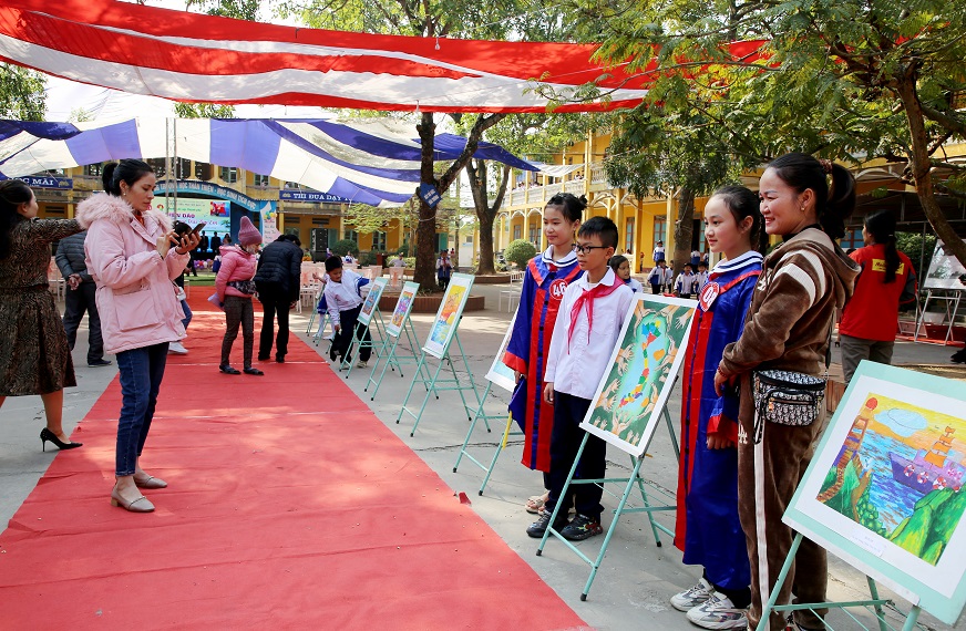Nhân dịp này, nhà trường đã tổng kết cuộc thi vẽ tranh về biển, đảo quê hương của các em học sinh.
