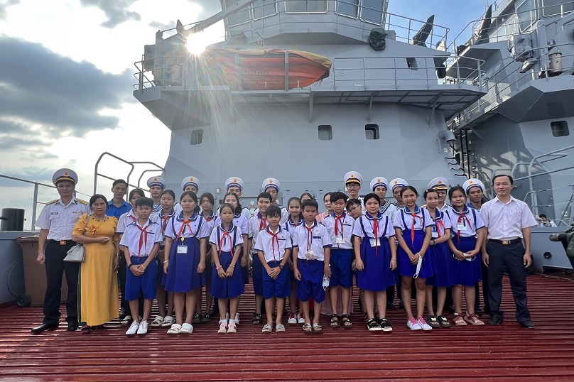 Thầy cô giáo và các em học sinh được chỉ huy Hải đội giới thiệu về quá trình thành lập, nhiệm vụ chính trị của đơn vị; tham quan doanh trại, tìm hiểu về công việc, đời sống sinh hoạt hằng ngày của bộ đội và được tham gia một số hoạt động trải nghiệm cùng chiến sĩ.