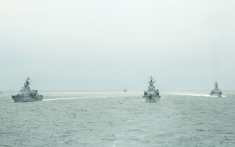 Biên đội Tàu tên lửa của Lữ đoàn 167 triển khai đội hình vào tuyến bắn. Ảnh: Quang Tiến