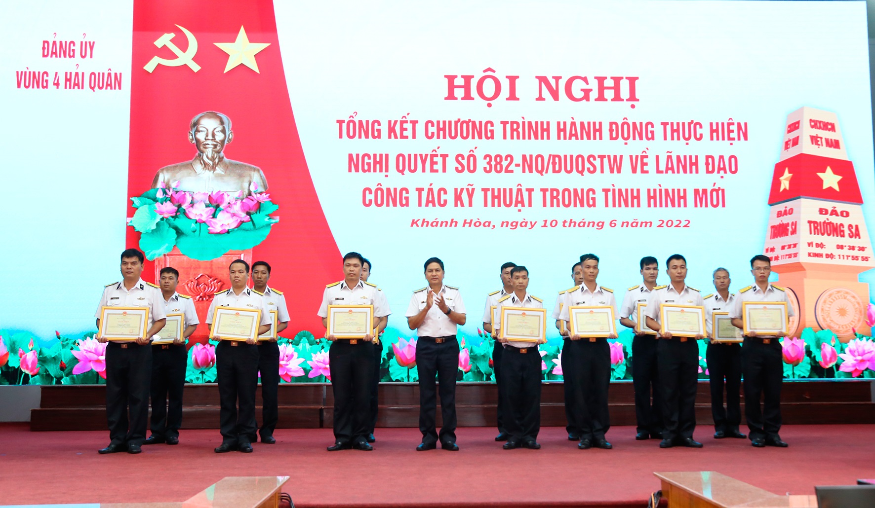 Quán triệt Nghị quyết 382-NQ/ĐUQSTW và chương trình hành động thực hiện của các cấp, Đảng ủy Vùng 4 đã triển khai thực hiện nghiêm túc, toàn diện, đồng bộ, hiệu quả các mặt CTKT; lãnh đạo, chỉ đạo đảm bảo đầy đủ, kịp thời số lượng, chất lượng tàu thuyền, VKTBKT cho các nhiệm vụ thường xuyên và đột xuất. Các đơn vị của Vùng bảo đảm tốt CTKT trong huấn luyện, SSCĐ, góp phần bảo vệ vững chắc chủ quyền vùng biển, đảo được phân công, bảo đảm an ninh, an toàn Căn cứ quân sự Cam Ranh.