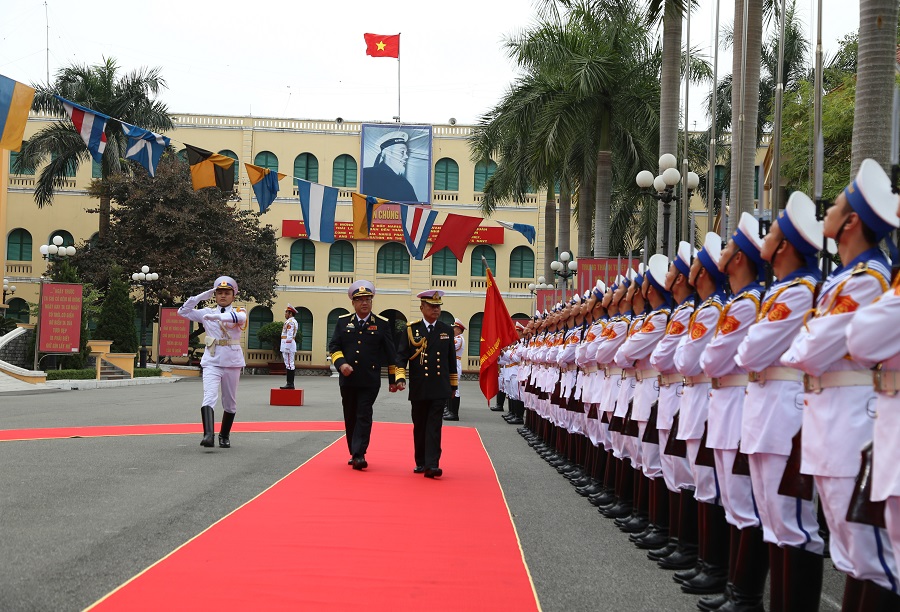 Chuẩn Đô đốc Phạm Hoài Nam và Đô đốc Naris Pratoomsuwan duyệt Đội danh dự Hải quân Việt Nam