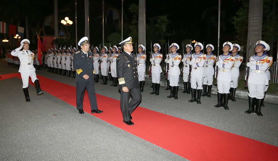 Tư lệnh Hải quân Indonesia và Tư lệnh Hải quân Việt Nam duyệt Đội danh dự Hải quân Việt Nam