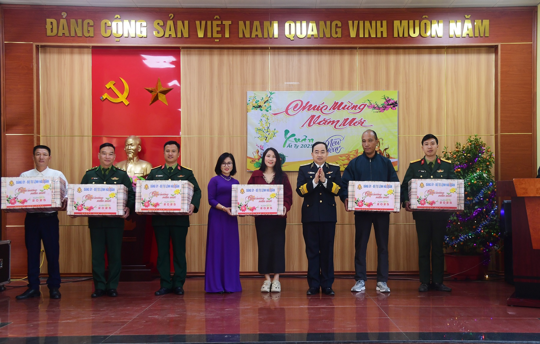 Tư lệnh Hải quân cùng các đại biểu tặng quà cán bộ, chiến sĩ Trạm ra đa 480