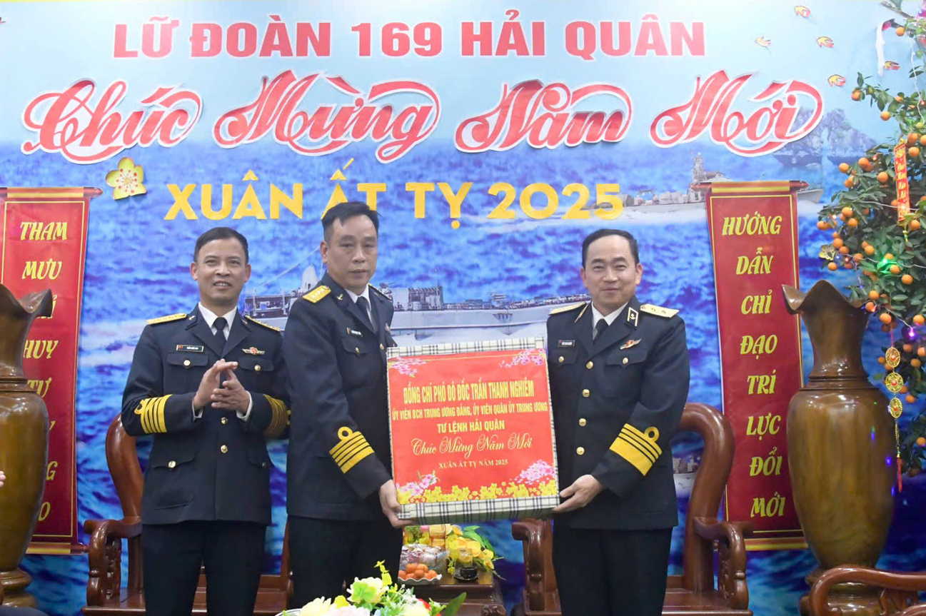 Chiều cùng ngày, Phó Đô đốc Trần Thanh Nghiêm và đoàn công tác cũng đã đến thăm, kiểm tra và chúc tết cán bộ, chiến sĩ Lữ đoàn 169, Vùng 1.