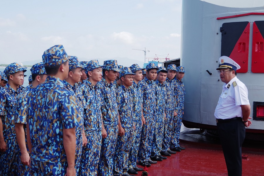 Phó Đô đốc Phạm Hoài Nam kiểm tra bộ đội tàu chiến đấu của Lữ đoàn 171. Ảnh: Văn Thơ