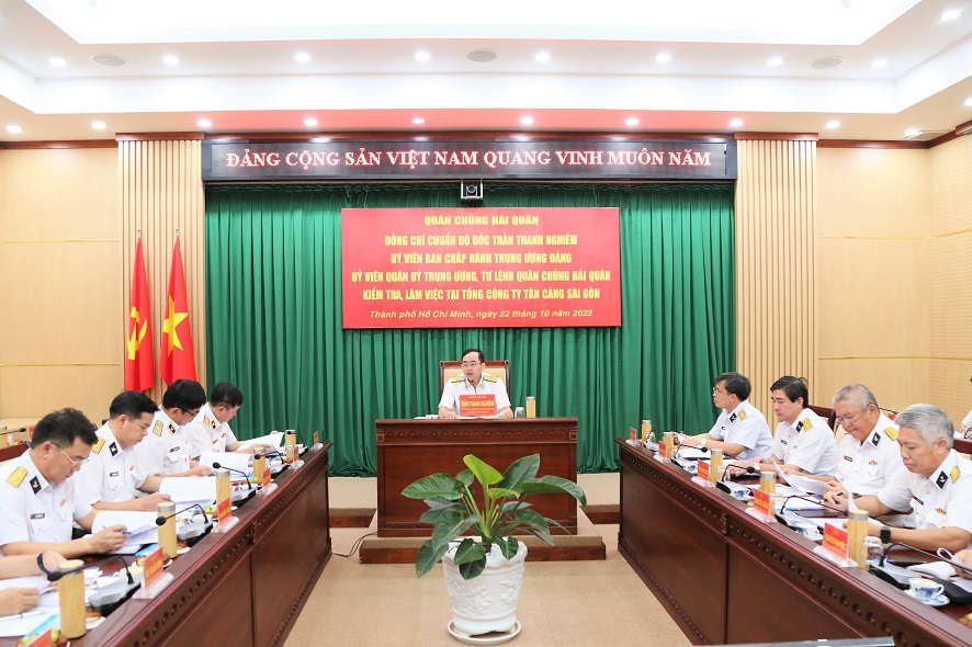 Sáng 22/10, tại TP.Hồ Chí Minh, đoàn công tác của Quân chủng Hải quân do Chuẩn Đô đốc Trần Thanh Nghiêm, Ủy viên Trung ương Đảng, Tư lệnh Hải quân làm trưởng đoàn đã đến kiểm tra và nắm tình hình các mặt công tác tại Tổng công ty Tân cảng Sài Gòn.