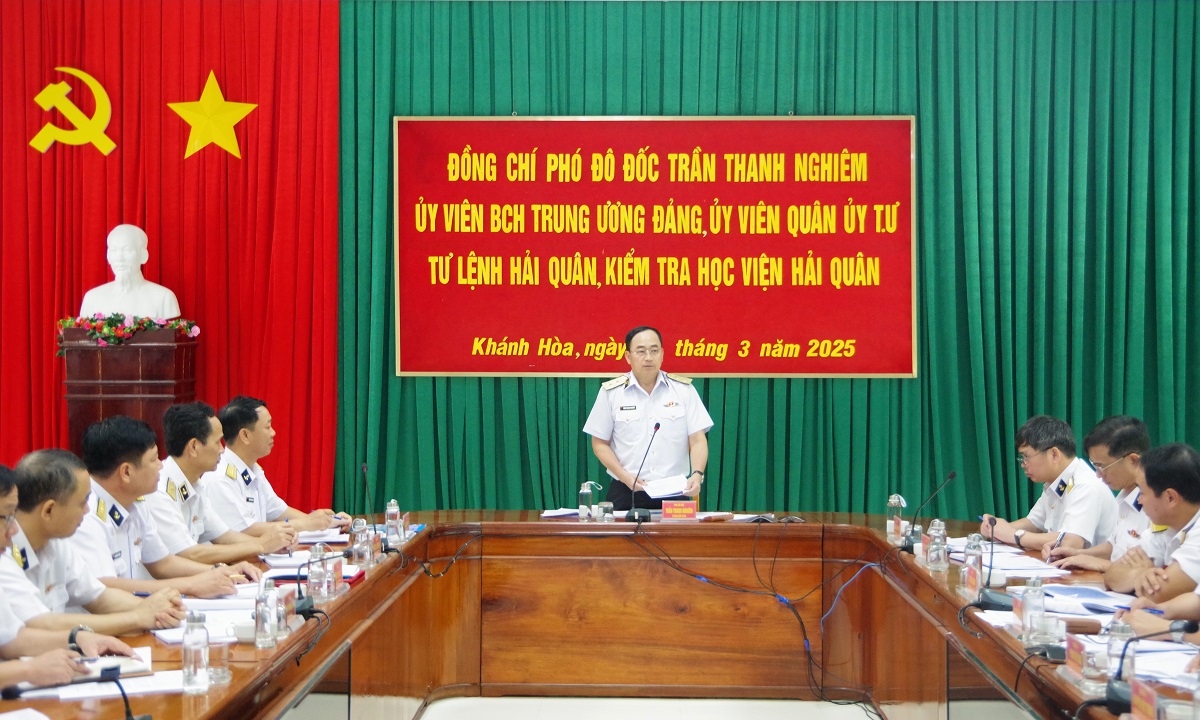 Sáng 11/3, tại TP. Nha Trang, tỉnh Khánh Hòa, đoàn công tác của Quân chủng Hải quân do Phó Đô đốc Trần Thanh Nghiêm, Ủy viên Trung ương Đảng, Tư lệnh Hải quân làm trưởng đoàn, đã đến kiểm tra Học viện Hải quân.