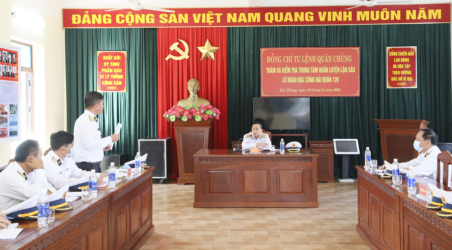 Chiều 10/11, tại Hải Phòng, đoàn công tác của Bộ Tư lệnh Hải quân do Chuẩn Đô đốc Trần Thanh Nghiêm, Ủy viên Trung ương Đảng, Tư lệnh Hải quân làm trưởng đoàn đã đến kiểm tra Trung tâm huấn luyện lặn sâu thuộc Lữ đoàn Đặc công Hải quân 126.