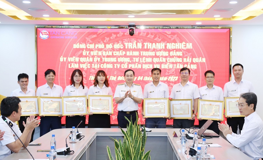 Dịp này, đồng chí Tư lệnh Hải quân đã trao Bằng khen của Bộ Quốc phòng và Quân chủng Hải quân cho 5 tập thể và 6 cá nhân thuộc TCO vì đã có thành tích xuất sắc trong thực hiện nhiệm vụ từ năm 2021 đến năm 2023. Tổng công ty Tân cảng Sài Gòn biểu dương, khen thưởng 6 tập thể và 8 các nhân có thành tích xuất sắc.