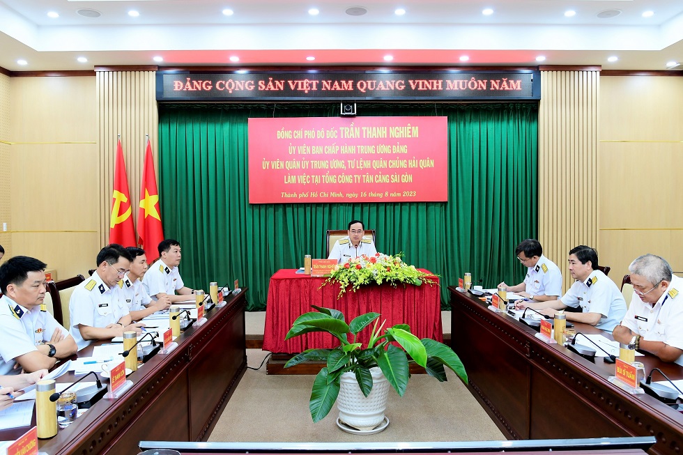 Sáng 16/8, tại TP. Hồ Chí Minh, Phó Đô đốc Trần Thanh Nghiêm, Ủy viên Trung ương Đảng, Tư lệnh Hải quân và đoàn công tác của Quân chủng đến làm việc tại Tổng công ty Tân cảng Sài Gòn. Đón đoàn có các đồng chí: Đại tá Nguyễn Năng Toàn, Bí thư Đảng ủy, Chủ tịch Tổng công ty; Đại tá Ngô Minh Thuấn, Tổng giám đốc; các đồng chí trong Ban tổng giám đốc và chỉ huy các cơ quan, đơn vị, công ty trực thuộc.