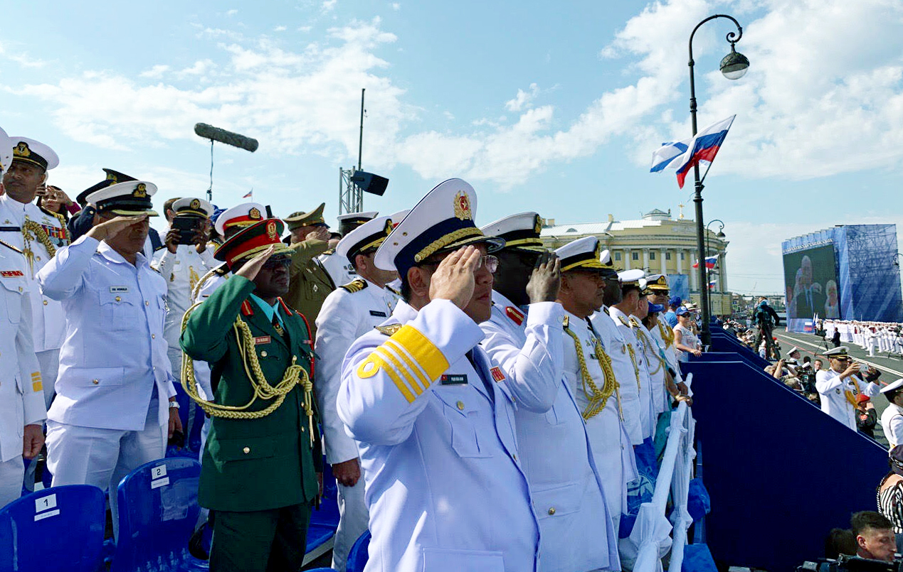 11 giờ ngày 28-7, Hải quân Liên bang Nga tổ chức lễ duyệt binh tàu. Đây là một trong những ngày hội của truyền thống lớn nhất của đất nước Nga. Tổng thống Vladimir Vladimirovich Putin chủ trì. Tham dự lễ có 28 đoàn Tư lệnh/Trưởng đoàn Hải quân các nước.