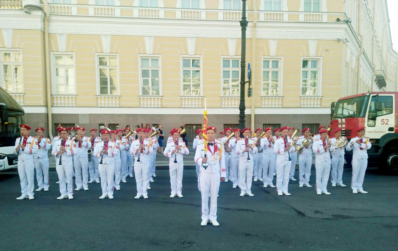 Đội Quân nhạc Hải quân nhân dân Việt Nam gồm 45 người (40 nhạc công nhạc công thuộc Bộ Tham mưu Hải quân và một số nhạc công thuộc Đoàn nghi lễ, Bộ Tổng Tham mưu) đã biểu diễn tại Lễ duyệt binh và phục vụ công chúng tại thành phố TP. Saint Peterburg. Tham gia biểu diễn có Đoàn quân nhạc Hải quân nhân dân Việt Nam, Hải quân Hoàng gia Thái Lan và đội chủ nhà.