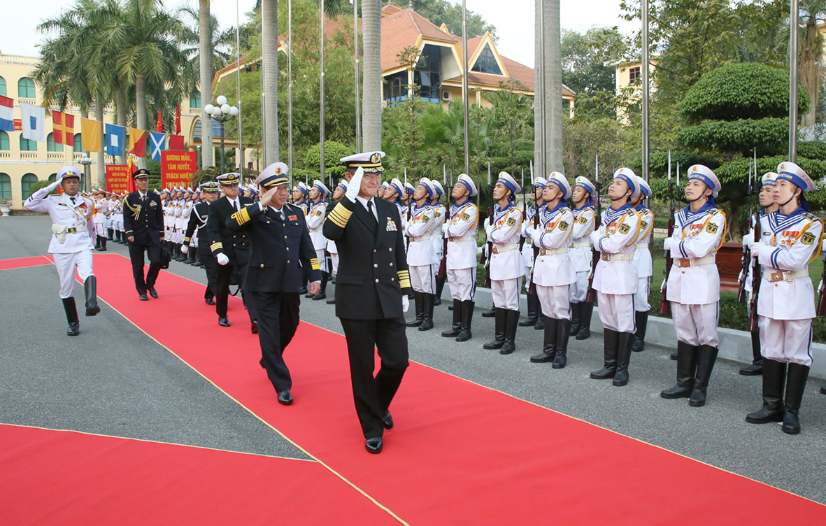 Tư lệnh Hải quân Nhật Bản và Việt Nam duyệt đội danh dự Hải quân Nhân dân Việt Nam