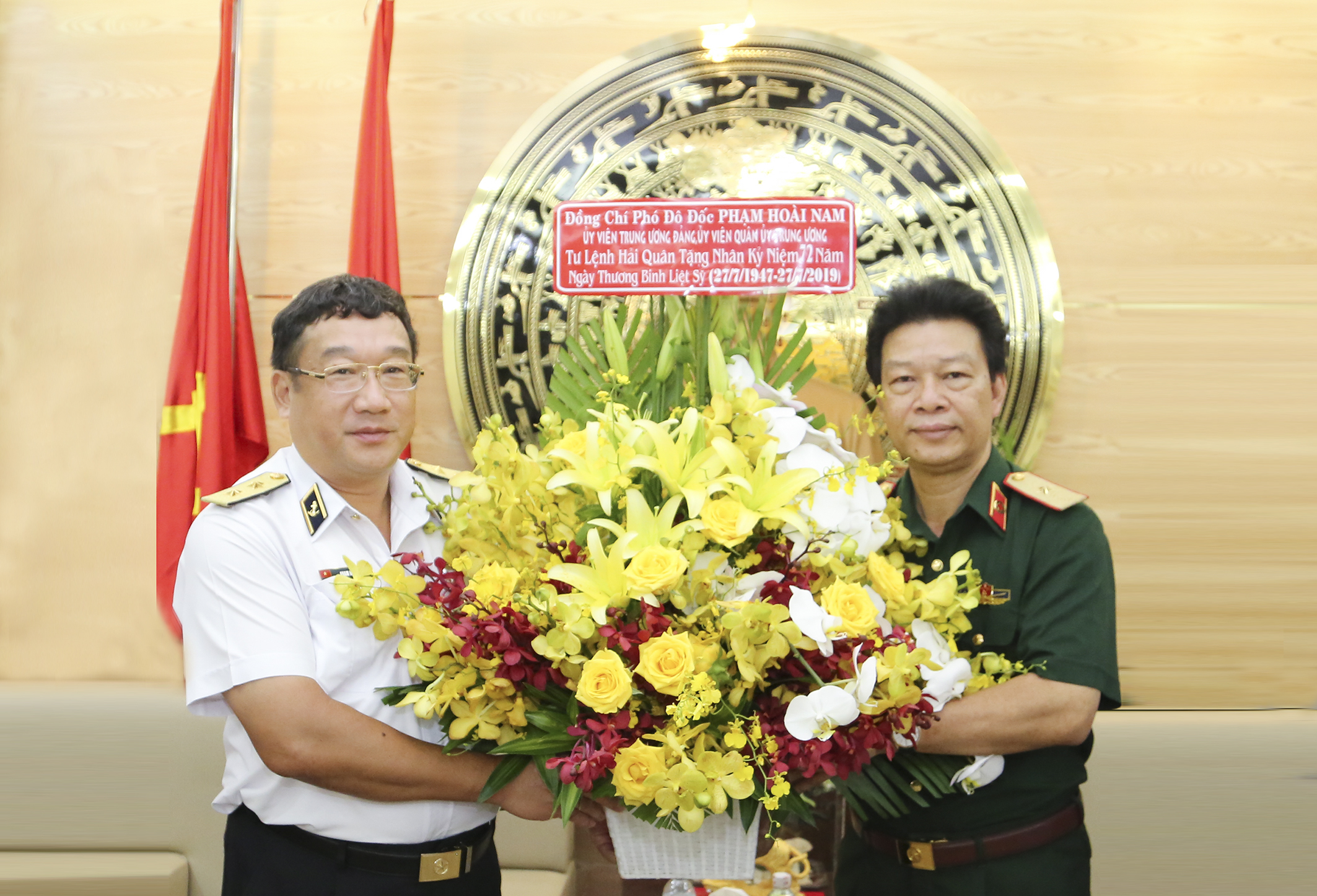Phó Đô đốc Phạm Hoài Nam tặng hoa Ban Giám đốc Bệnh viện