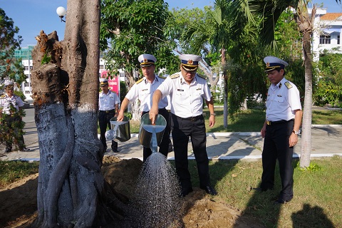 Chuẩn Đô đốc Phạm Hoài Nam cùng các đại biểu trồng cây lưu niệm tại Học viện