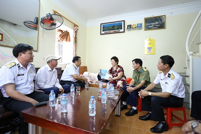 Chuẩn Đô đốc Phạm Hoài Nam và Đoàn công tác thăm, động viên gia đình CCB Đoàn tàu Không số Đào Quang Nghĩa ở phường Lê Lợi, quận Ngô Quyền, TP. Hải Phòng