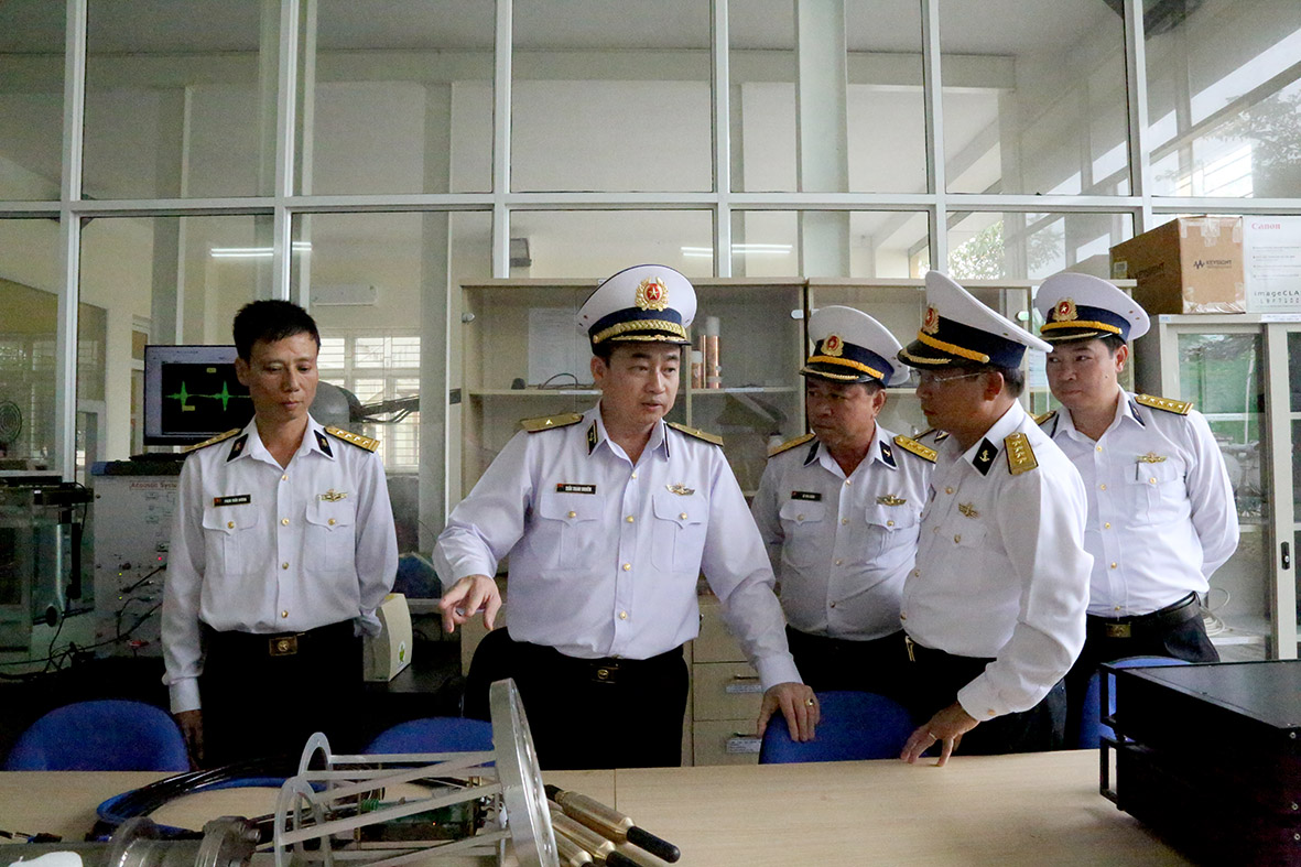 Chuẩn Đô đốc Trần Thanh Nghiêm kiểm tra Trung tâm công nghệ thủy âm của Viện
