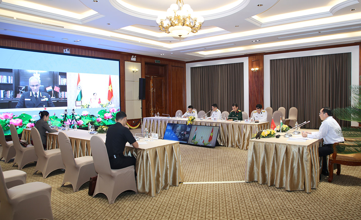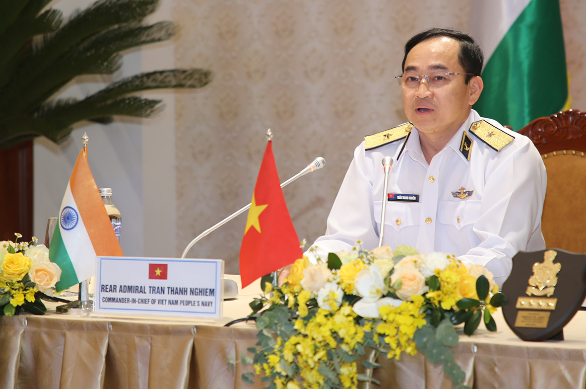 Chiều 24-11, tại trụ sở Cục Đối ngoại, Bộ Quốc phòng Việt Nam (Hà Nội), Chuẩn Đô đốc Trần Thanh Nghiêm, Tư lệnh Hải quân Việt Nam đã điện đàm trực tuyến với Đô đốc Ka-ram-bia Sinh, Tư lệnh Hải quân Ấn Độ.