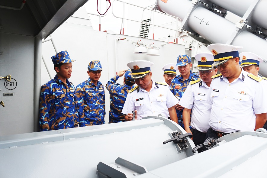 Tư lệnh Vùng 4 và đoàn công tác đã kiểm tra từng khoang, hầm, vị trí chiến đấu trên tàu để đánh giá thực chất việc duy trì VKTBKT ở trạng thái sẵn sàng chiến đấu; tình trạng VKTBKT và chất lượng công tác bảo quản, bảo dưỡng trang bị tàu thuyền.