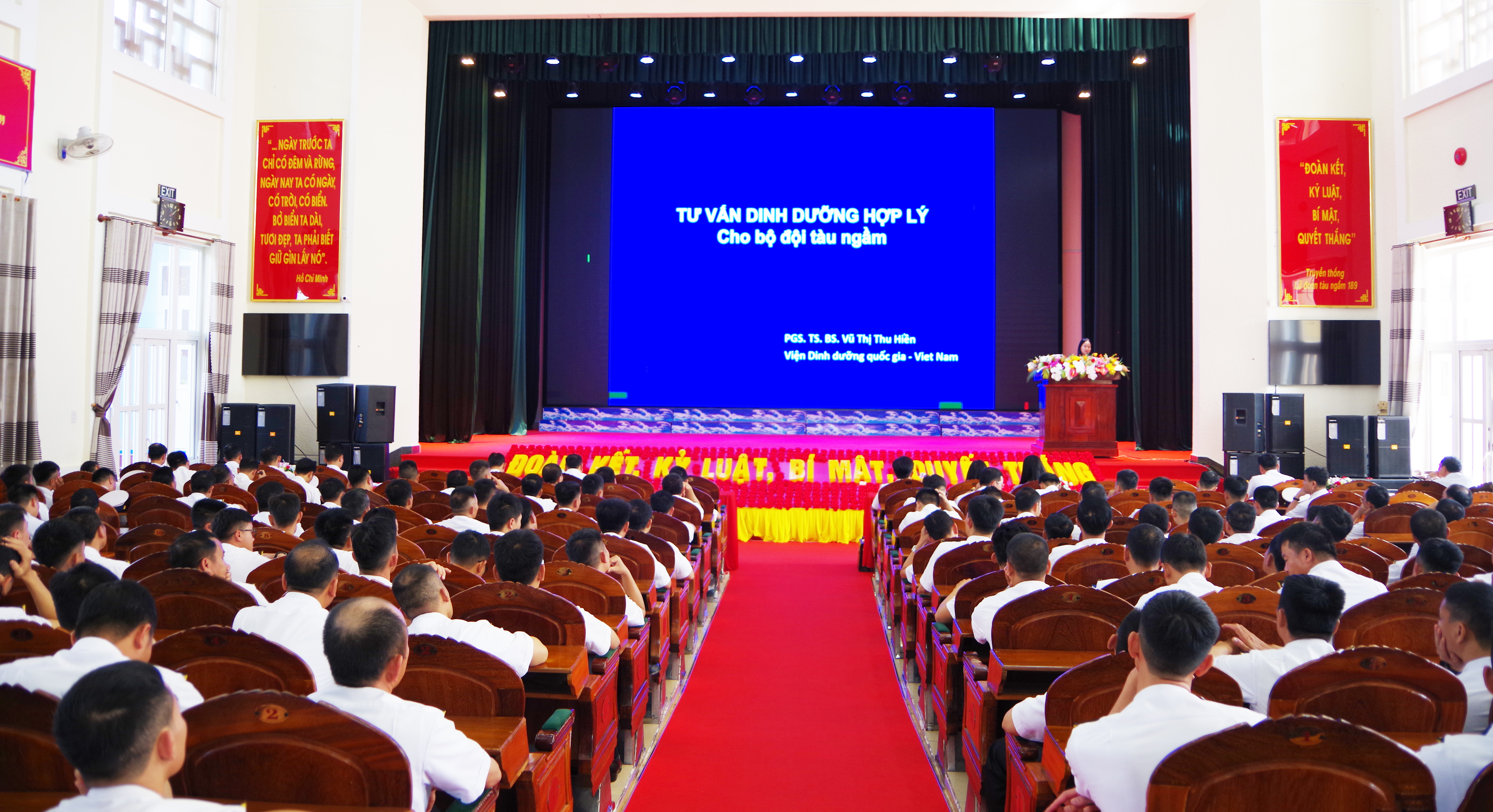 PGS, TS, BS Vũ Thị Thu Hiền đến từ Viện Dinh dưỡng Quốc gia Việt Nam đã cung cấp các kiến thức về dinh dưỡng cần thiết cho cơ thể để mỗi quân nhân phát triển toàn diện cả thể chất, tinh thần và trí tuệ; hỗ trợ hệ thống miễn dịch hoạt động mạnh mẽ, quản lý được cân nặng và phòng ngừa các bệnh lý nguy hiểm đối với thủy thủ tàu ngầm khi hoạt động trong môi trường khắc nghiệt, độc hại.