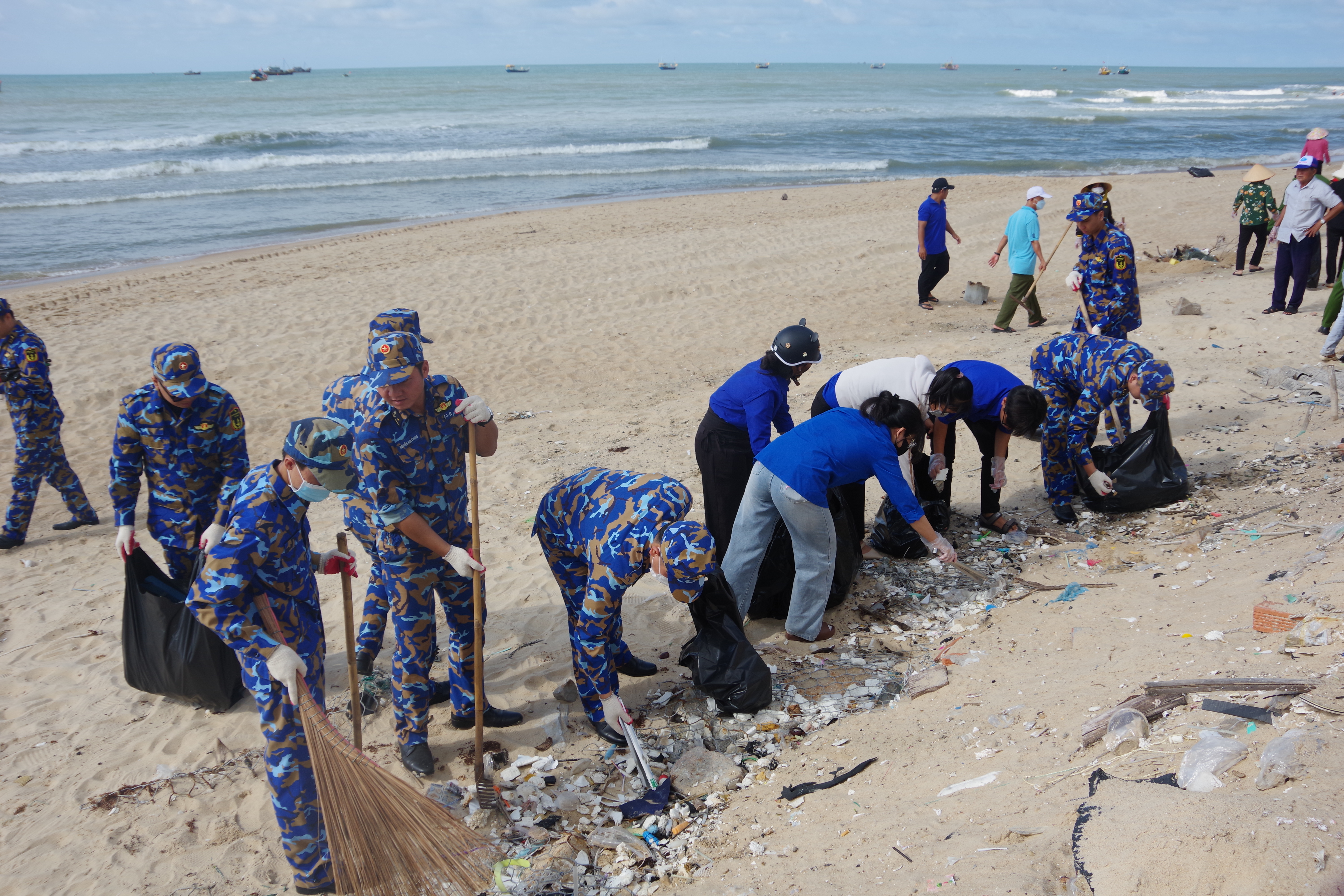 Ngay sau lễ phát động, tuổi trẻ Hải đoàn 129 đã phối hợp với cán bộ, đoàn viên thanh niên các lực lượng trên địa bàn tỉnh tham gia hoạt động “Chung tay làm sạch bãi biển” tại khu vực thị trấn Phước Hải, huyện Long Đất.