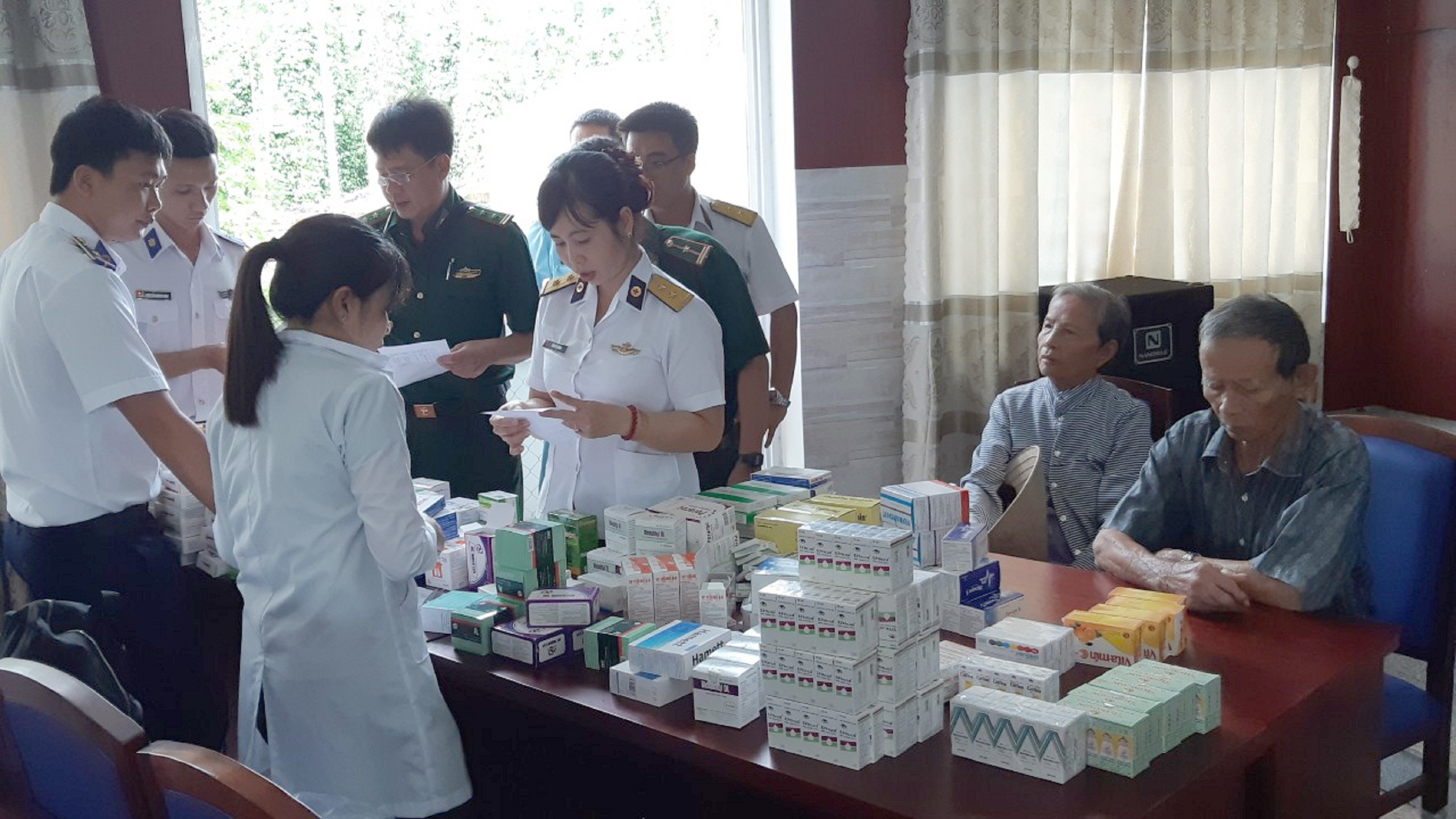 Đoàn y, bác sĩ của Hải đoàn 129 đã khám bệnh và cấp phát thuốc miễn phí cho 250 đối tượng chính sách xã Hòa Bình đồng thời tư vấn về chế độ ăn uống, luyện tập hằng ngày cho bà con để nâng cao sức khỏe.