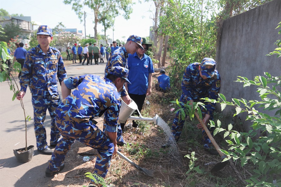 Tuổi trẻ Hải đoàn 129 tham gia trồng cây xanh ở xã Bình Giã, huyện Châu Đức, tỉnh Bà Rịa-Vũng Tàu