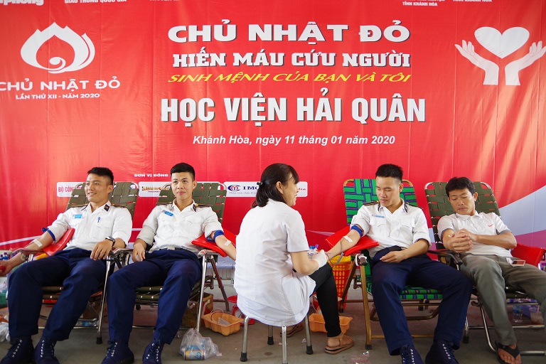 Đại tá Trần Tiến Dũng, Chủ nhiệm Chính trị Học viện Hải quân cho biết: Nhiều năm qua, tuổi trẻ Học viện luôn dẫn đầu phong trào hiến máu tình nguyện của tỉnh Khánh Hòa. Tính từ năm 2016 đến nay, Học viện đã làm tốt công tác tuyên truyền, vận động và hiến tặng trên 4.550 đơn vị máu vào ngân hàng máu sống của Việt Nam phục vụ hiệu quả công tác điều trị, chữa bệnh.