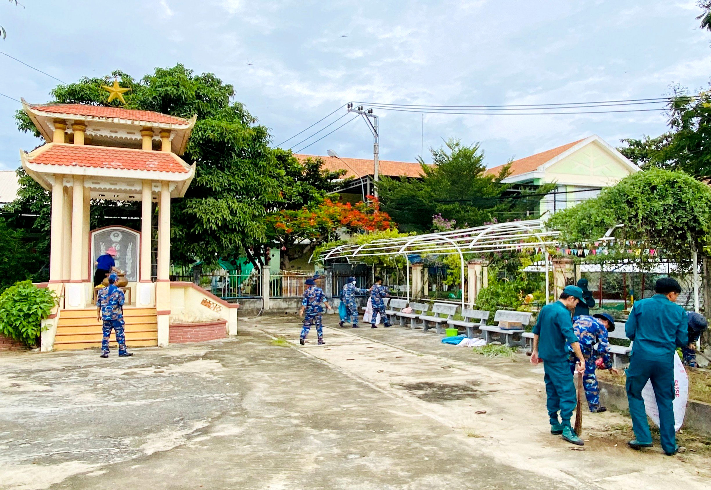 Sáng 21/7, tại TP. Cam Ranh, tỉnh Khánh Hòa, Đoàn cơ sở Kho 858, Cục Kỹ thuật Hải quân phối hợp cùng Đoàn phường Cam Nghĩa, TP. Cam Ranh tổ chức lao động, tu sửa, làm đẹp khuôn viên Đài tưởng niệm liệt sĩ trên địa bàn.