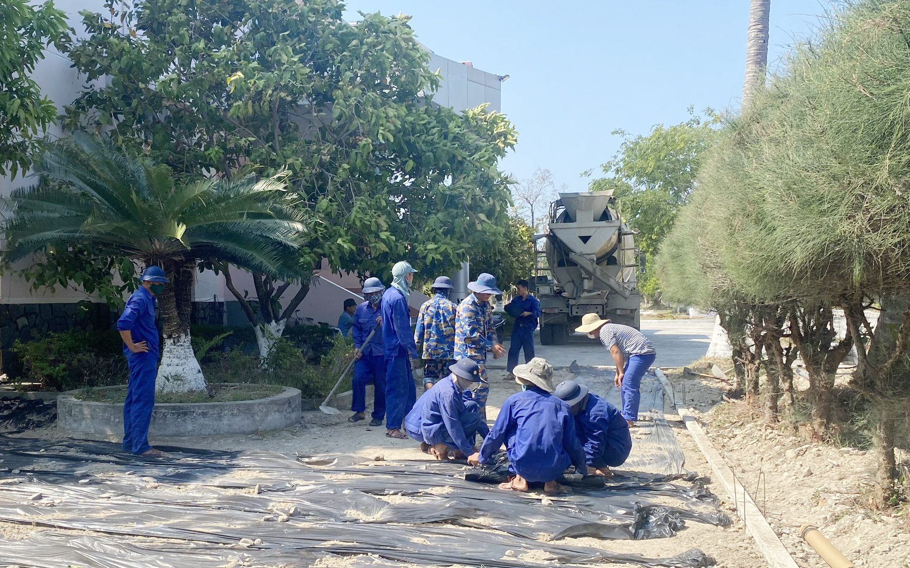 Với tinh thần tích cực và nhiệt tình cán bộ, đoàn viên thanh niên đã tổ chức san gạt mặt bằng, đổ hơn 12 khối bê tông với diện tích 120m2 đường đi và khuôn viên quanh hội trường đơn vị, bảo đảm kỹ thuật, chất lượng.