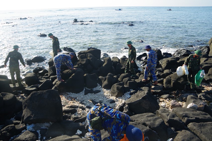 Ngày 30/6, tại huyện đảo Lý Sơn, tỉnh Quảng Ngãi, Đoàn cơ sở Lữ đoàn 126 phối hợp với Huyện đoàn Lý Sơn tổ chức lao động vệ sinh bờ biển.
