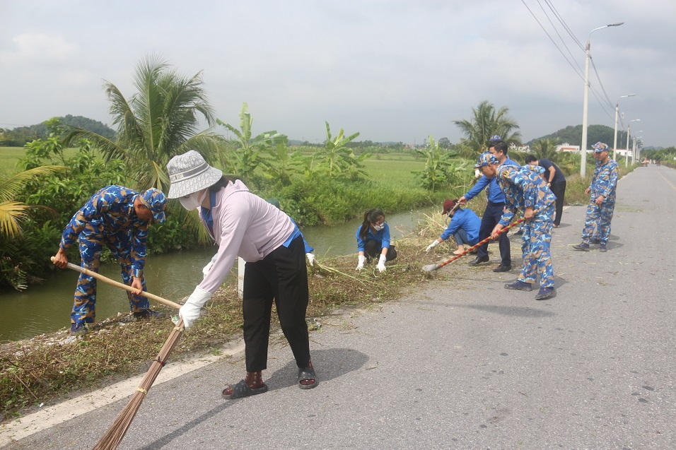 Cán bộ, đoàn viên dọn vệ sinh tuyến đường trục chính xã Kênh Giang