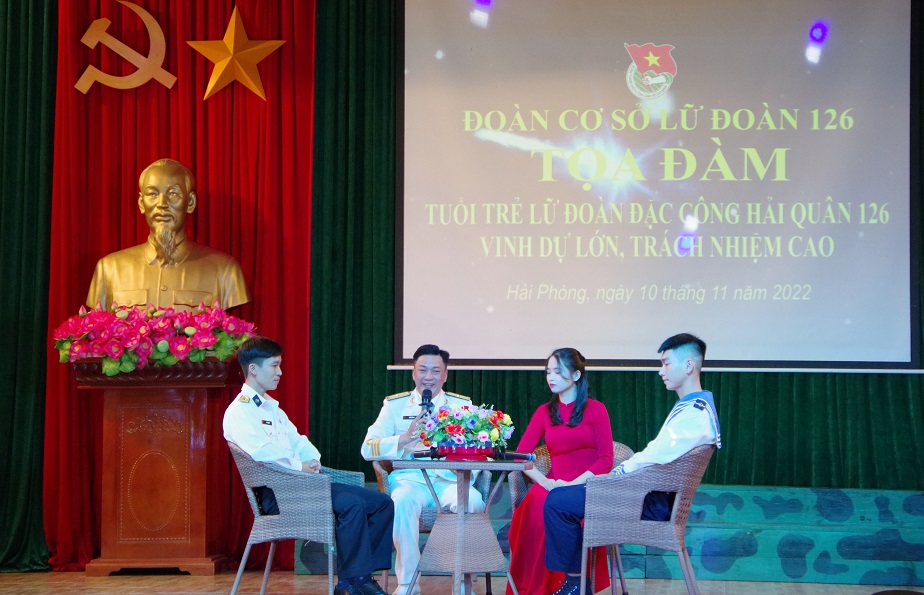 Tại buổi tọa đàm, cán bộ, đoàn viên, thanh niên đã trao đổi, thảo luận, phản ánh vinh dự được công tác tại Lữ đoàn Đặc công Hải quân 126, đơn vị có bề dày truyền thống và 3 lần được tuyên dương danh hiệu Anh hùng lực lượng vũ trang nhân dân.