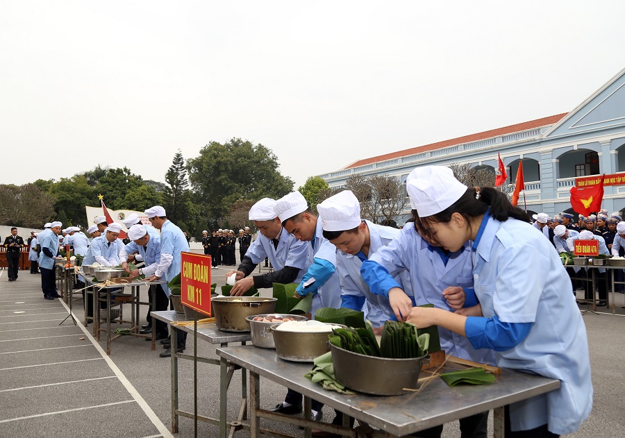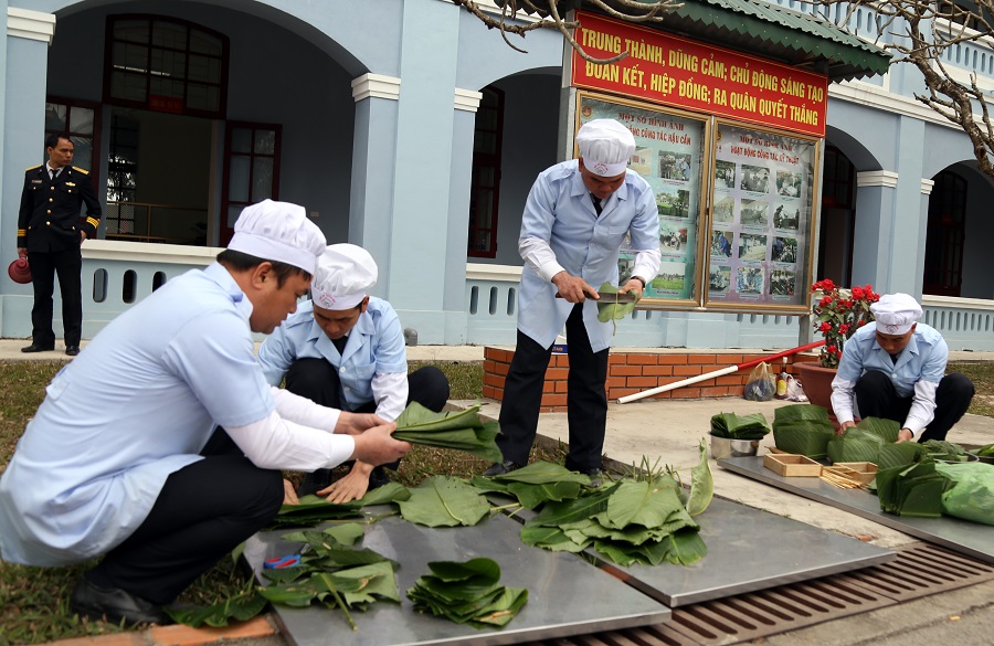 Tuổi trẻ Lữ đoàn 147 Hải quân thi gói bánh chưng xanh