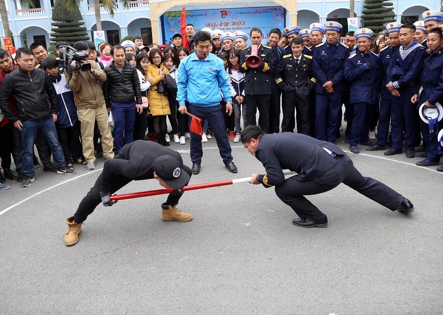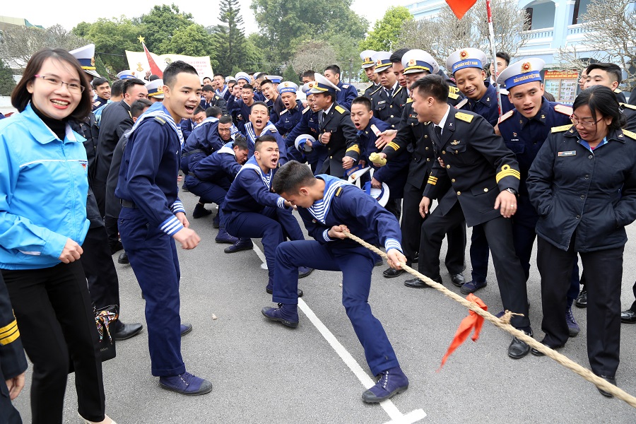 Trò chơi đẩy gậy giữa đoàn viên thanh niên Lữ đoàn 147 và đơn vị kết nghĩa