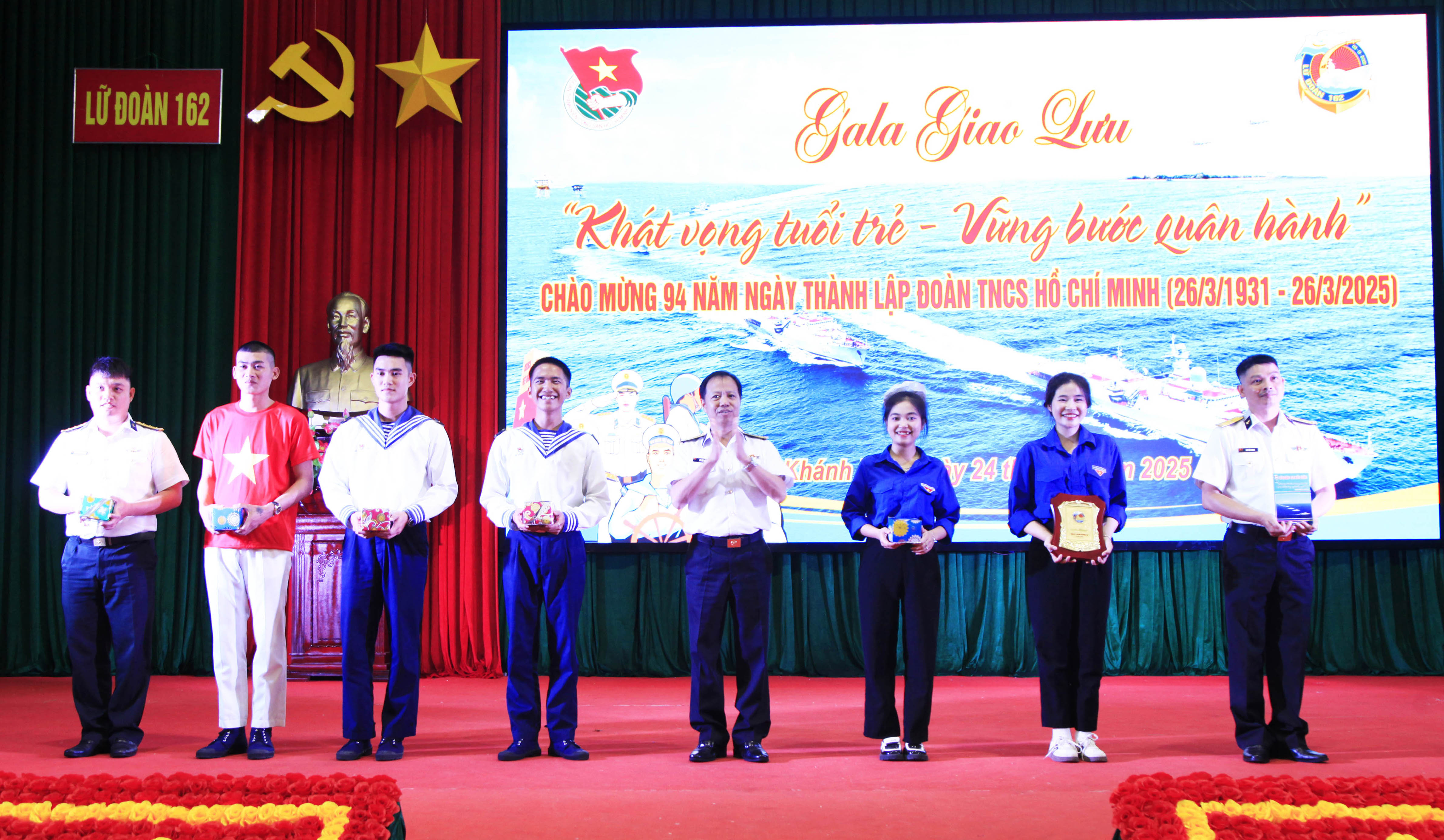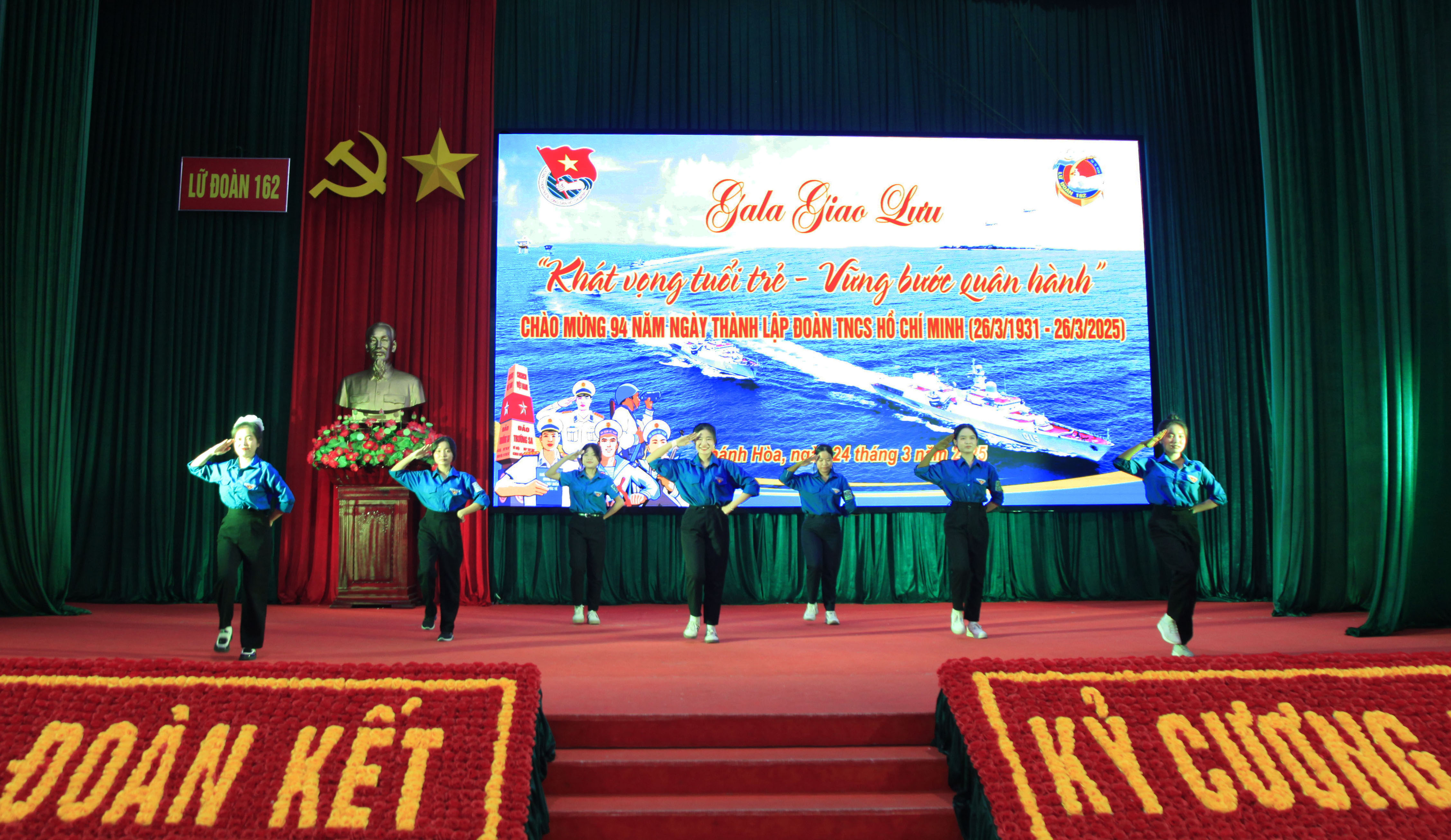 Tối 24/3, tại thành phố Cam Ranh, tỉnh Khánh Hoà, Đoàn cơ sở Lữ đoàn 162, Vùng 4 Hải quân tổ chức đêm gala giao lưu văn hoá văn nghệ và các vũ điệu trong sinh hoạt tập thể với chủ đề “Khát vọng tuổi trẻ, vững bước quân hành” chào mừng kỷ niệm 94 năm Ngày thành lập Đoàn TNCS Hồ Chí Minh (26/3/1931 - 26/3/2025).