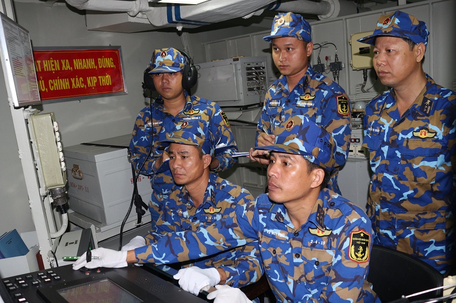 Huấn luyện điều khiển hỏa lực pháo trên tàu của Lữ đoàn 162