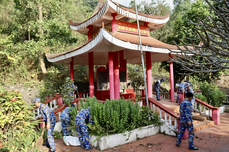 Từ 16 đến 19/1, tại Quảng Ninh, 40 cán bộ, đoàn viên Đoàn cơ sở Lữ đoàn 169, Vùng 1 Hải quân phối hợp với Đoàn xã Vạn Yên, Hội phụ nữ và các trường học trên địa bàn tham gia lao động tu sửa Nhà bia tưởng niệm các anh hùng, liệt sĩ xã Vạn Yên, huyện Vân Đồn, tỉnh Quảng Ninh.