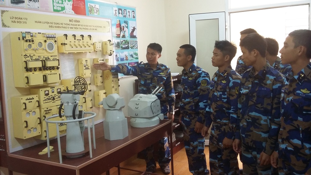 Huấn luyện sử dụng hệ thống ra đa và bộ khí tài điều khiển pháo trên mô hình ở Lữ đoàn 172