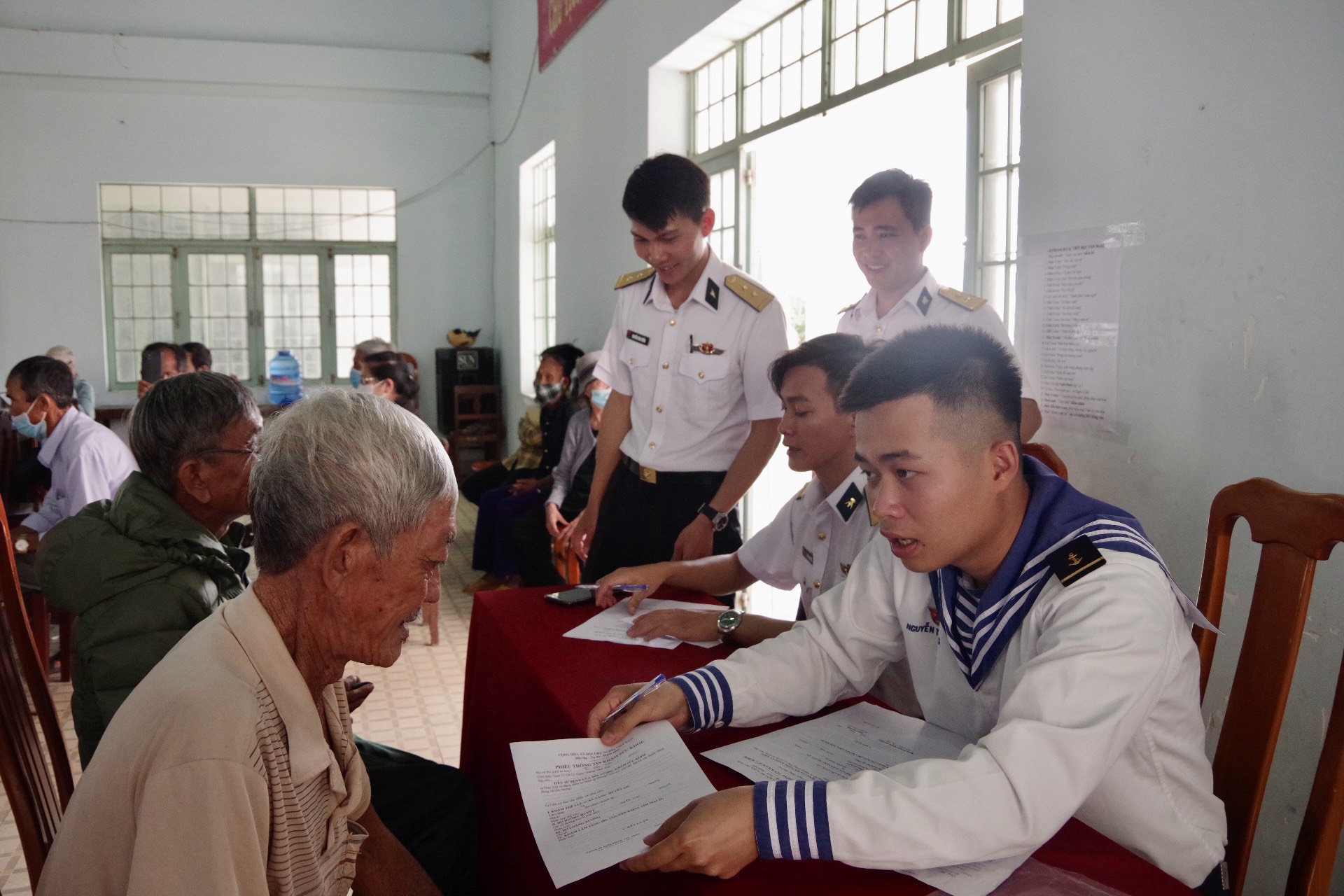 Cán bộ, đoàn viên hướng dẫn nhân dân khám bệnh