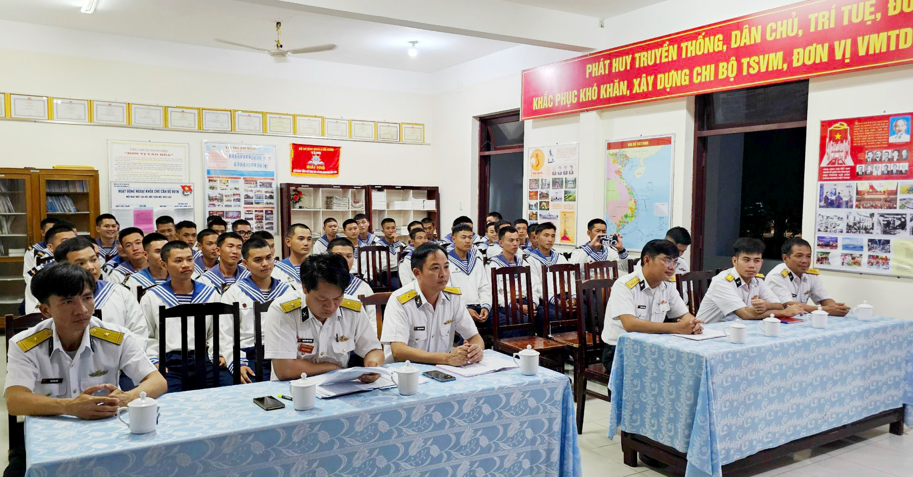 Tối 14/12, tại TP. Cam Ranh, tỉnh Khánh Hoà, các tổ chức đoàn trong Đoàn cơ sở Lữ đoàn 957, Vùng 4 Hải quân đồng loạt tổ chức toạ đàm thanh niên với chủ đề “Ý chí mạnh, trách nhiệm cao, kỷ luật nghiêm, an toàn, đoàn kết”. Thượng tá Tiên Quang Sự, Phó Chính uỷ Lữ đoàn dự và chỉ đạo tại Liên chi đoàn Tiểu đoàn 454.