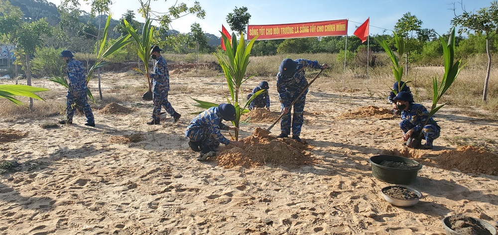 Đoàn viên thanh niên đơn vị tích cực trồng cây xanh, tổng dọn vệ sinh môi trường