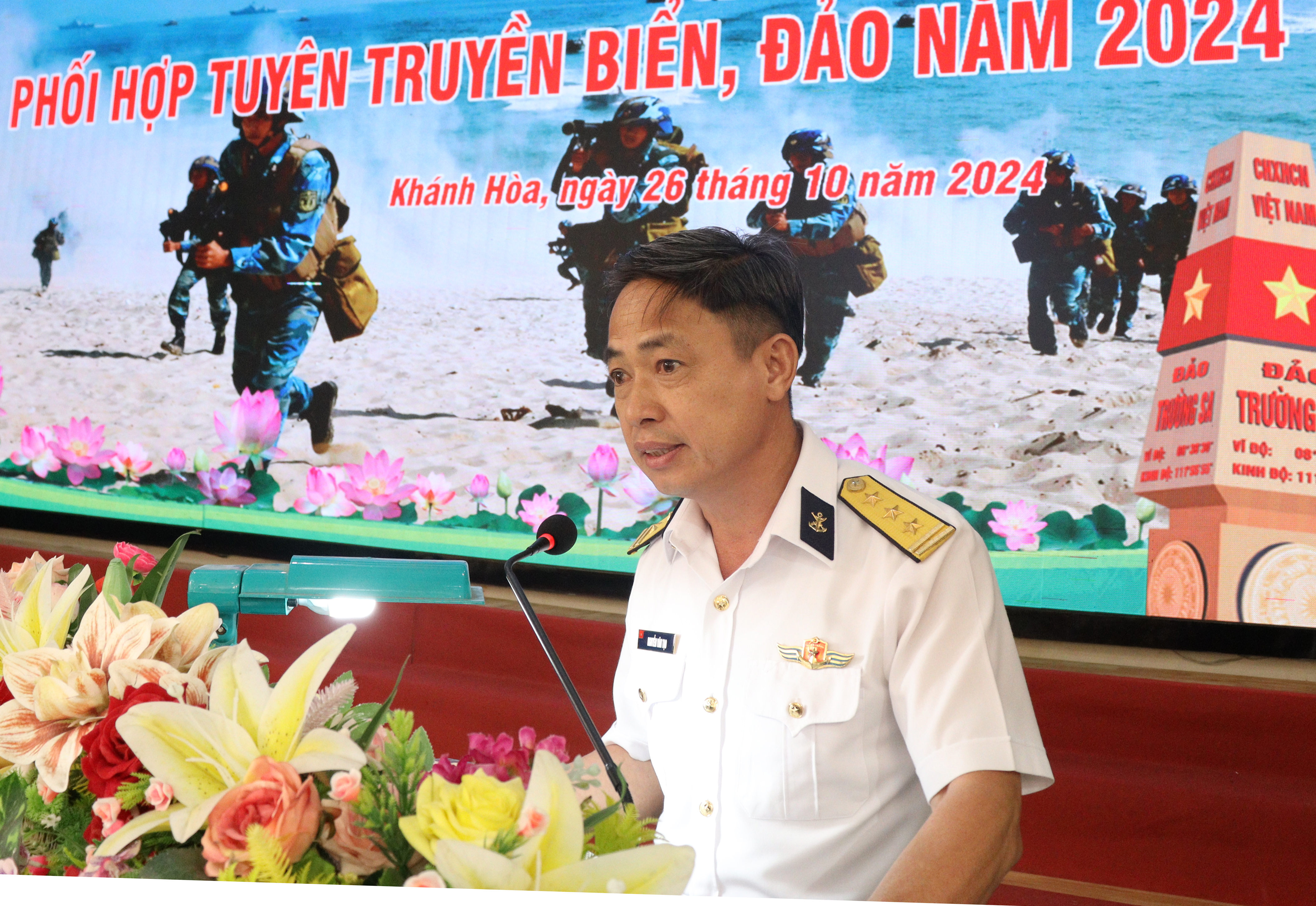 Thượng tá Nguyễn Văn Tạo Phó Chính ủy Lữ đoàn thông tin về tình hình biển, đảo
