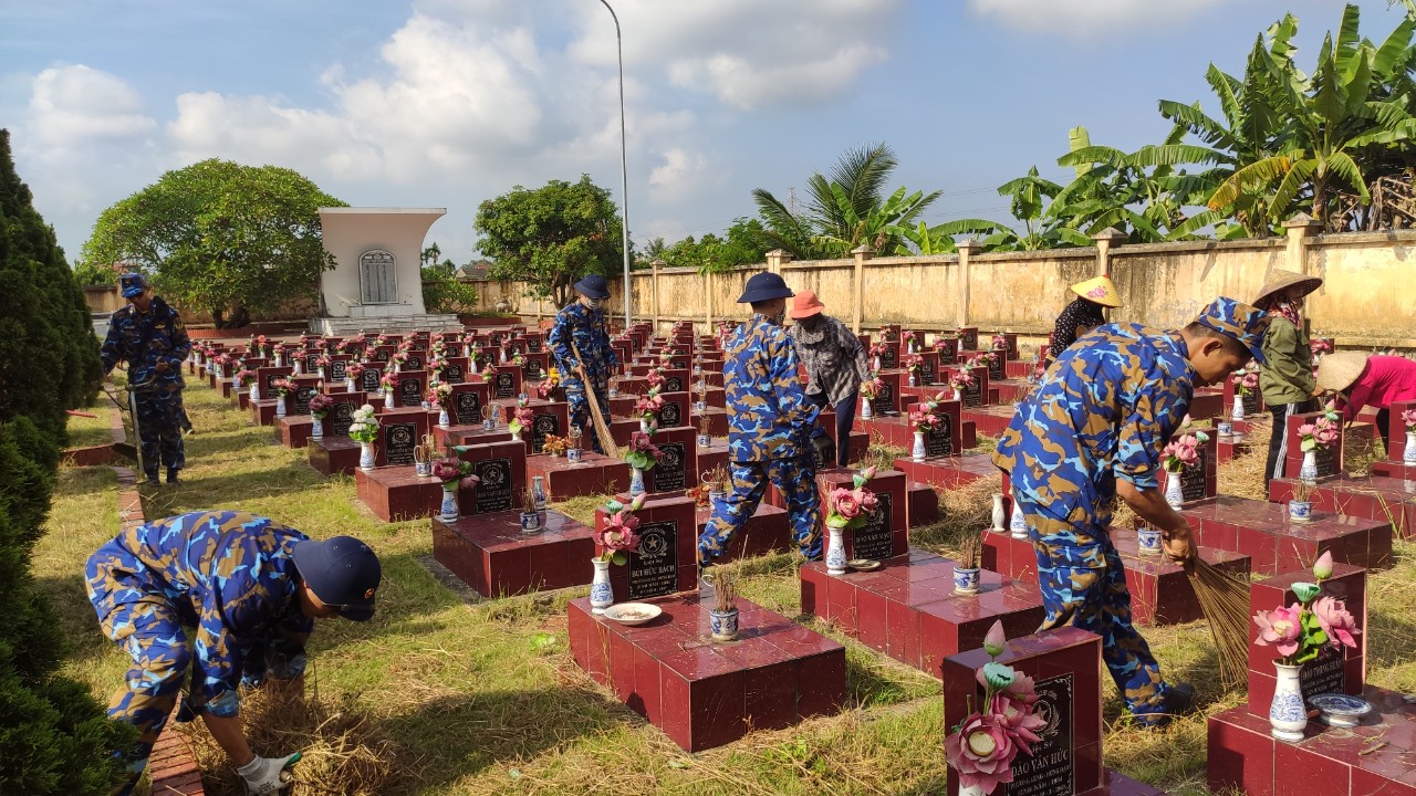 Sau khi dâng hương tưởng nhớ các anh hùng-liệt sĩ, hơn 150 cán bộ, đoàn viên, hội viên đã tiến hành chăm sóc các phần mộ, cắt, nhổ cỏ làm đẹp khuôn viên nghĩa trang, tạo cảnh quan môi trường sạch, đẹp và thông thoáng.