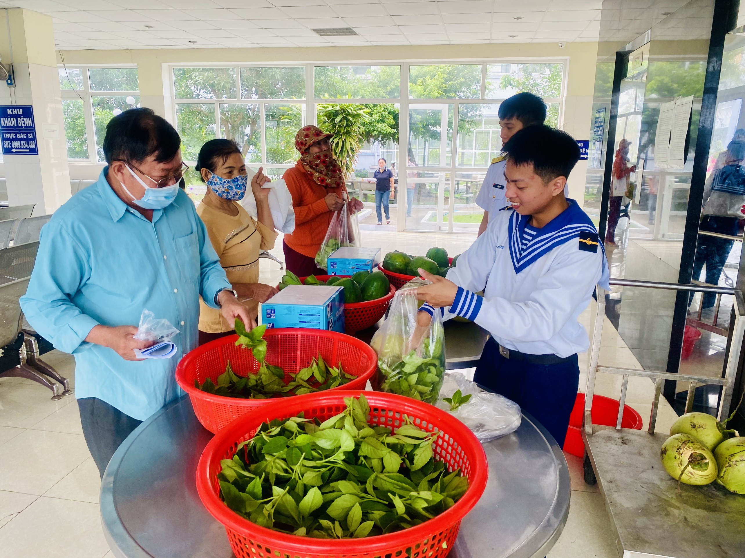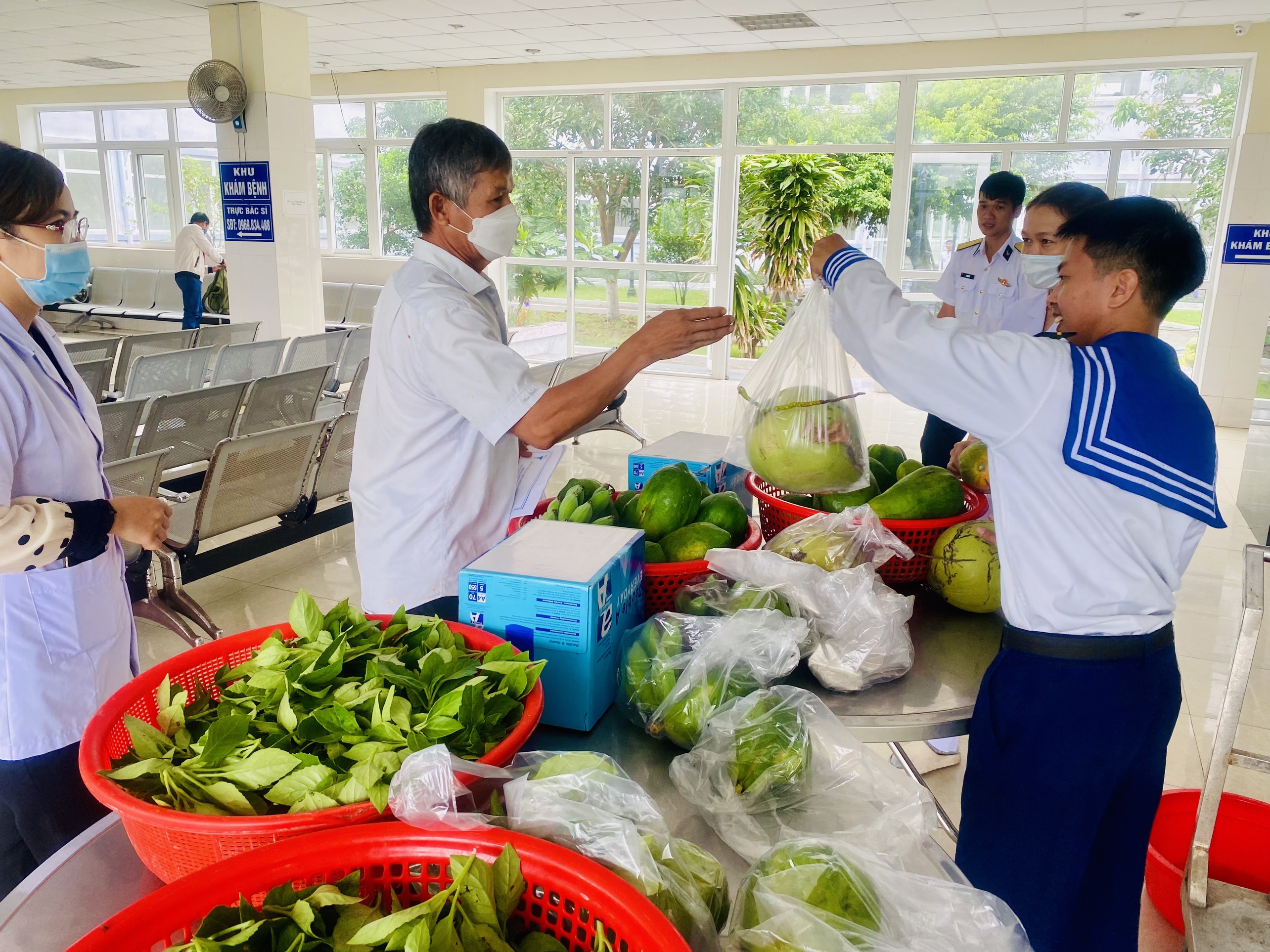 Ngày 7/3, tại Phú Yên, Đoàn cơ sở Trung tâm An điều dưỡng tàu ngầm, Cục Hậu cần Hải quân tổ chức “Gian hàng 0 đồng” tặng rau, củ, quả cho nhân dân địa phương đến khám, chữa bệnh tại đơn vị.