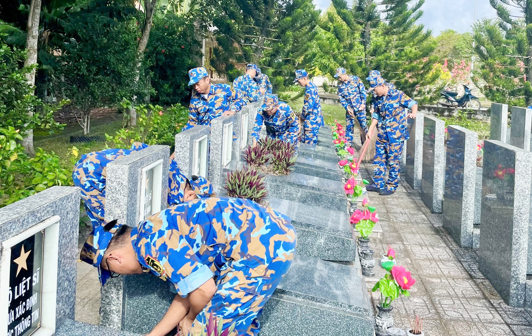 Cán bộ, đoàn viên thanh niên Trung tâm tu bổ các phần mộ liệt sĩ tại nghĩa trang huyện Nhơn Trạch