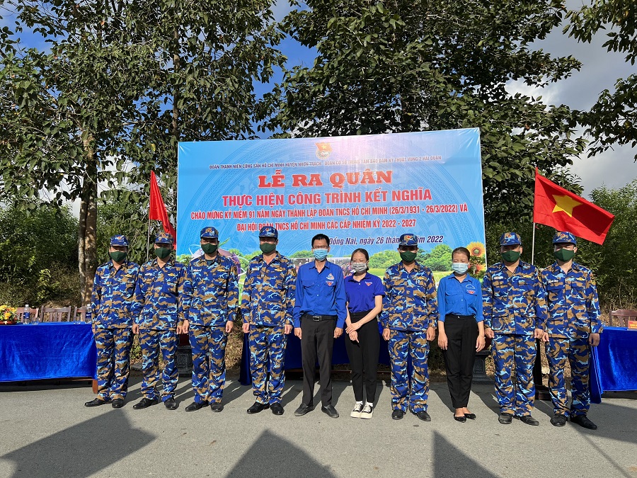 Sáng 26/3, tại huyện Nhơn Trạch, tỉnh Đồng Nai, Đoàn cơ sở Trung tâm Bảo đảm kỹ thuật (BĐKT) Vùng 2 Hải quân phối hợp với Huyện đoàn Nhơn Trạch tổ chức Lễ ra quân thực hiện công trình kết nghĩa kỷ niệm 91 năm Ngày thành lập Đoàn TNCS Hồ Chí Minh (26/3/1931-26/3/2022) và Đại hội Đoàn các cấp nhiệm kỳ 2022-2027.