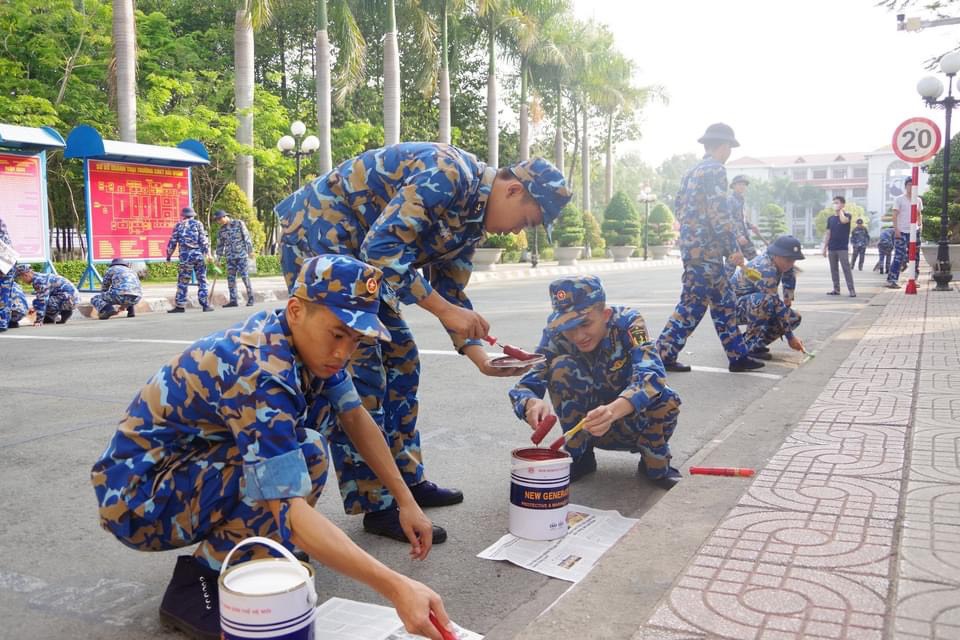 Cán bộ, đoàn viên đã tổ chức tổng dọn khuôn viên doanh trại, phòng ở, tiến hành thu gom rác thải, khơi thông cống thoát nước; tu bổ, cắt tỉa, tạo hình cây cảnh khuôn viên cơ quan, đơn vị với diện tích hơn 3.000m2; sơn, kẻ, vẽ lại các vạch kẻ đường, biển báo chỉ dẫn, làm sạch hơn 2.000 m đường nội bộ của đơn vị.