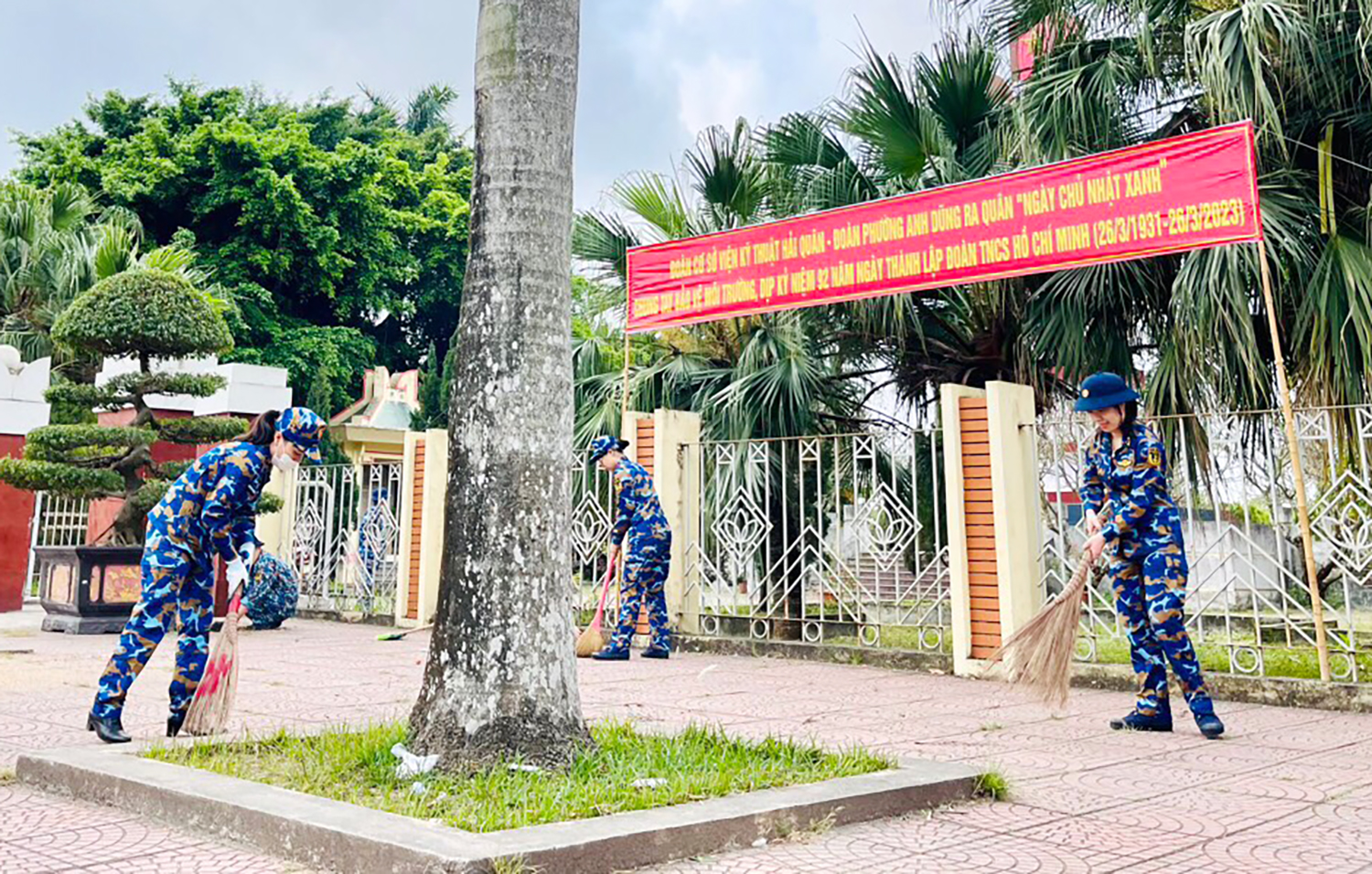 Tích cực, chủ động thực hiện “Ngày chủ nhật xanh”, thời gian qua đoàn viên thanh niên Viện Kỹ thuật Hải quân đã phối hợp chặt chẽ với Đoàn phường Anh Dũng tổ chức nhiều hoạt động nhằm đẩy mạnh phong trào “Chung tay bảo vệ môi trường” lan tỏa ý thức giữ gìn môi trường xanh, sạch, đẹp góp phần xây dựng địa bàn đóng quân an toàn.