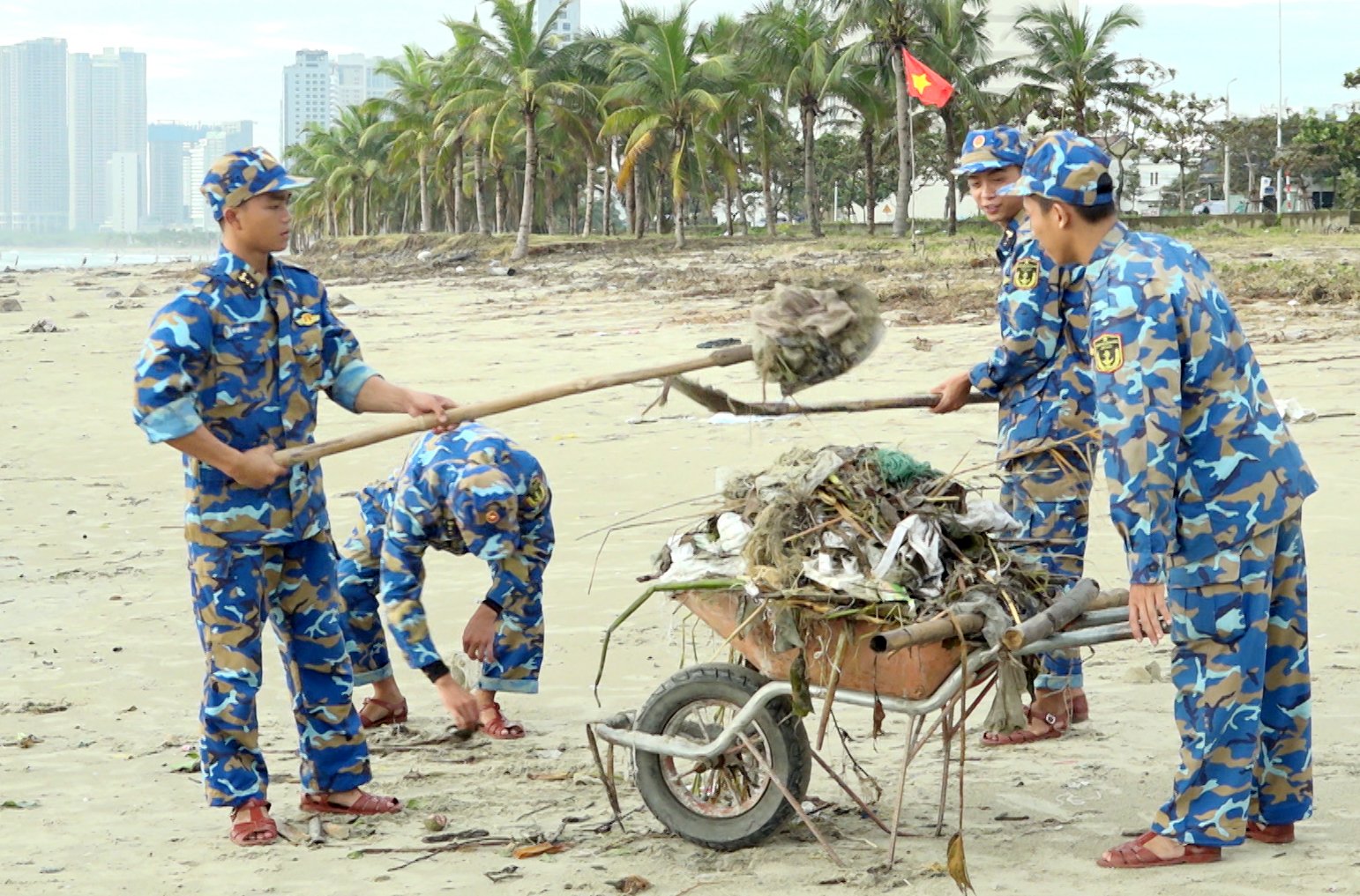 Tuổi trẻ Vùng 3 tham gia làm sạch bãi biển sau bão số 4